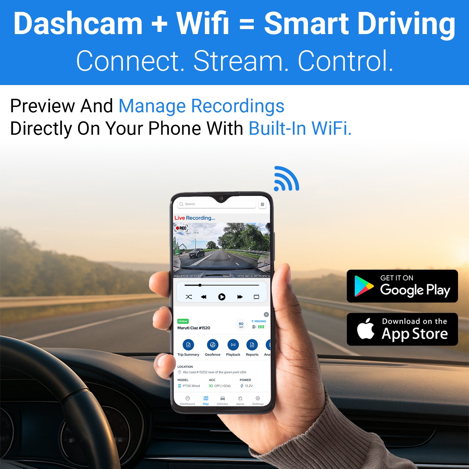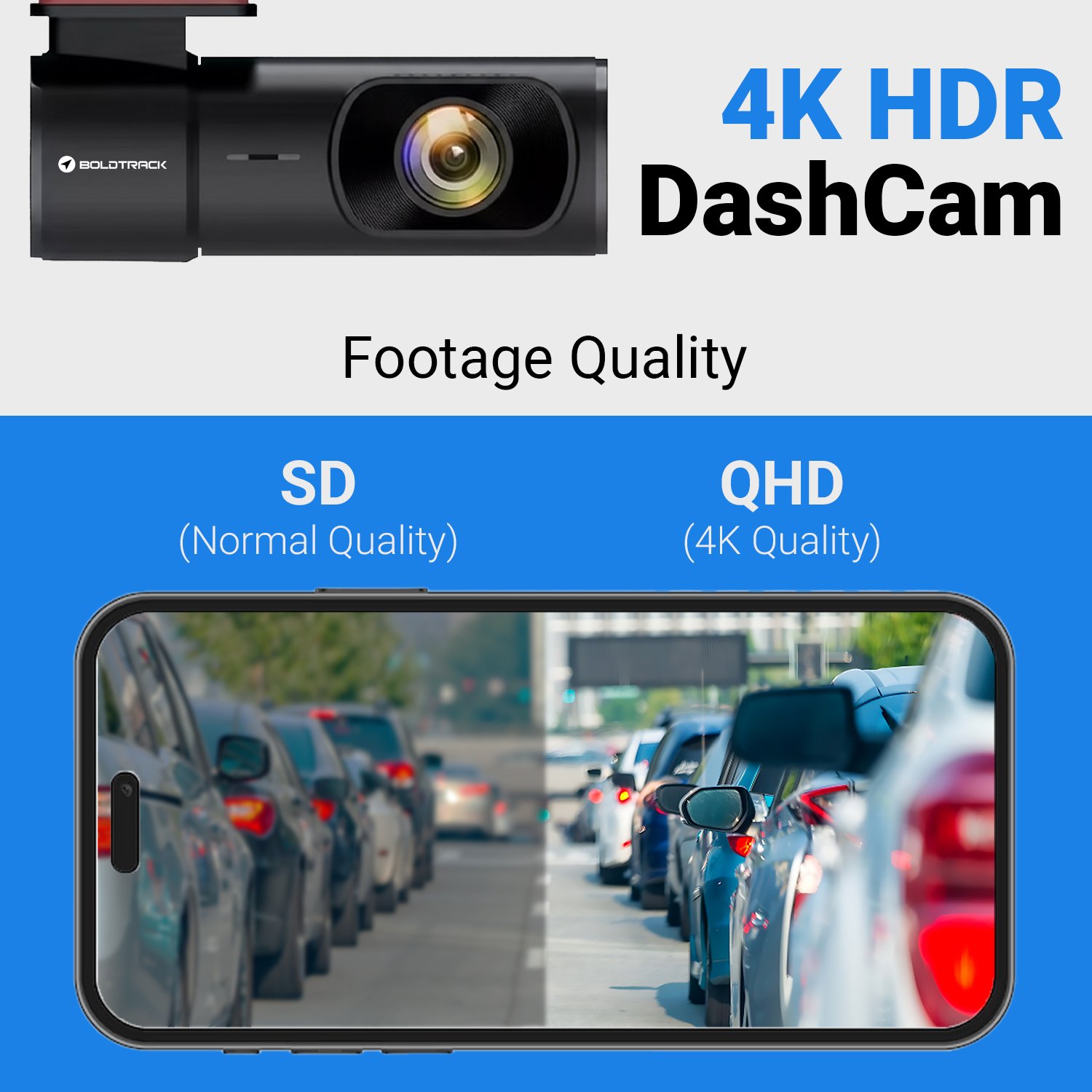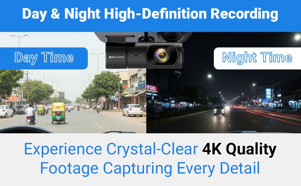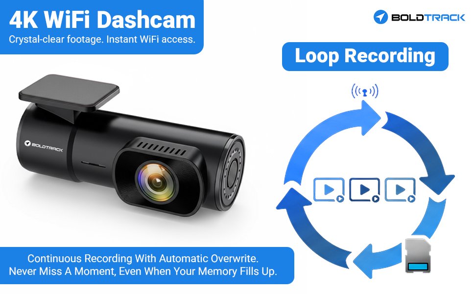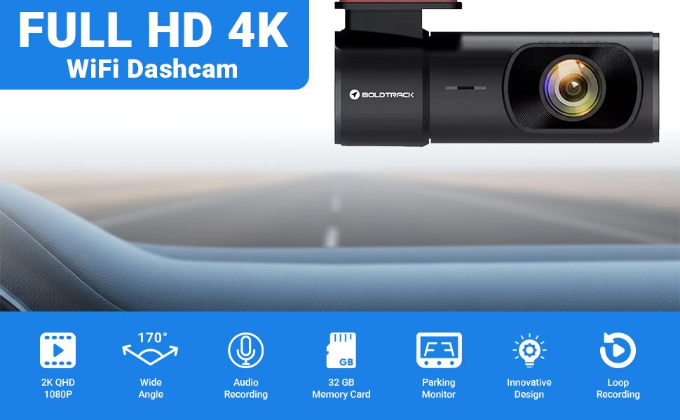 4K Wifi Dashcam for Bike, Car, Trucks | Voice Capture | Loop Recording | 170° Wide Angle View | Android & iOS