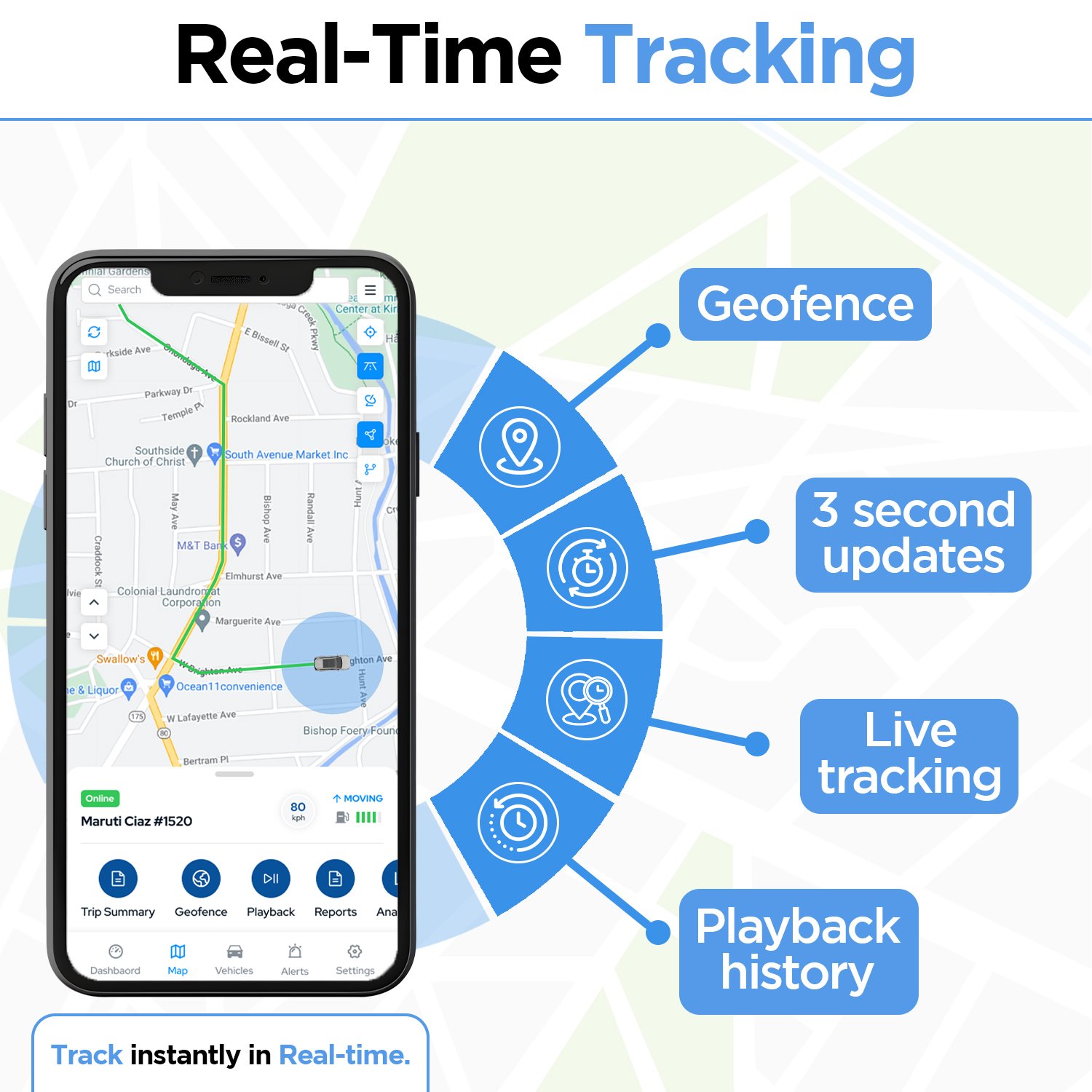 Track your vehicle’s real-time location 24x7 on Google Maps with traffic updates using our user-friendly mobile app & desktop dashboard.