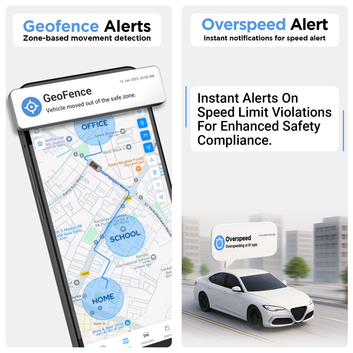 Set up a custom Geo-Fence around your vehicle. Get real-time alerts when it enters or exits the defined zone — perfect for parents and fleet managers.